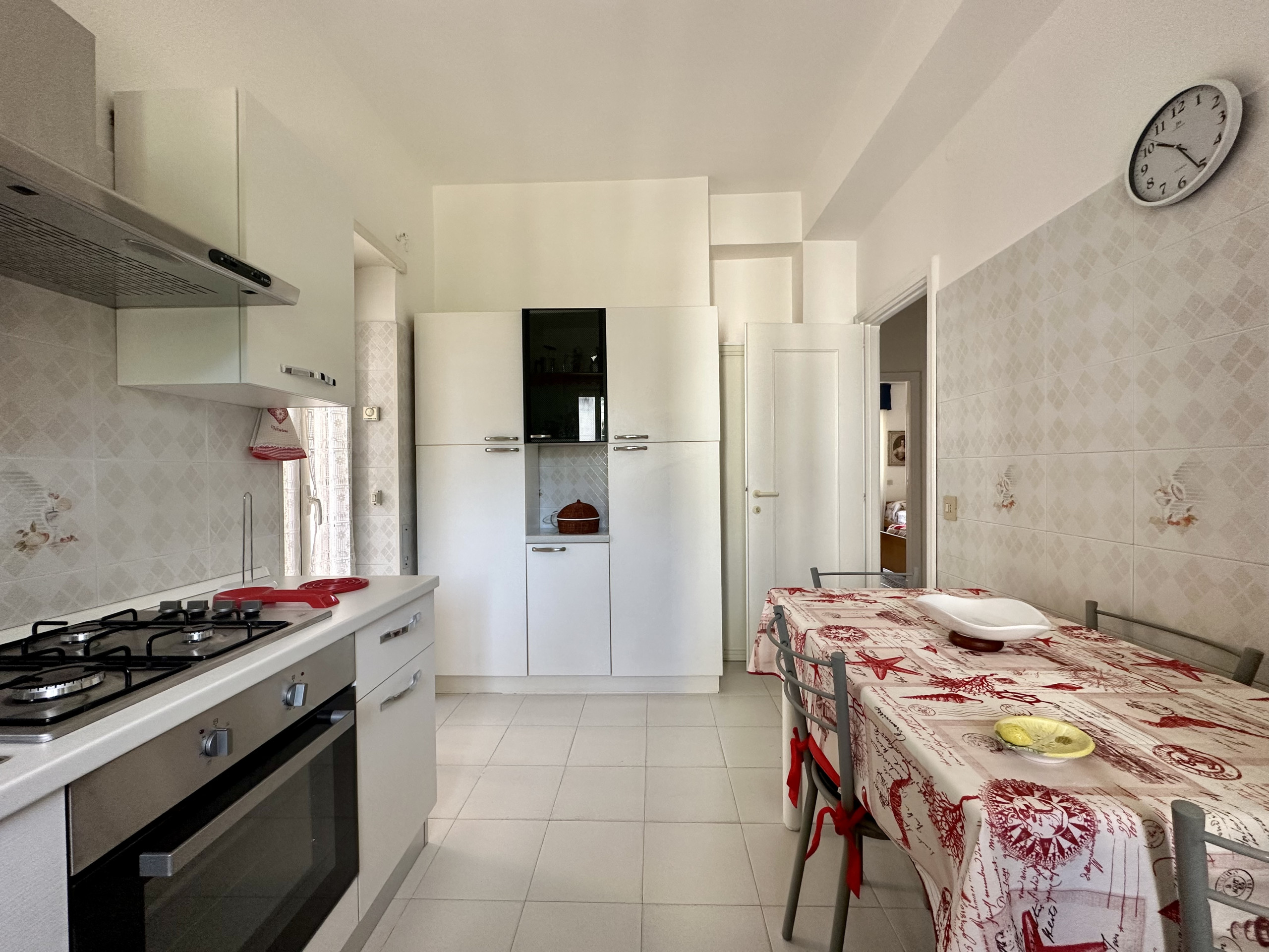 From the living room you can already see the open kitchen complete and equipped with everything you need, from here as from the living room through a French door you can easily access the terrace, furnished and with a magnificent view of the sea and the entire coast, perfect for breakfast with friends.