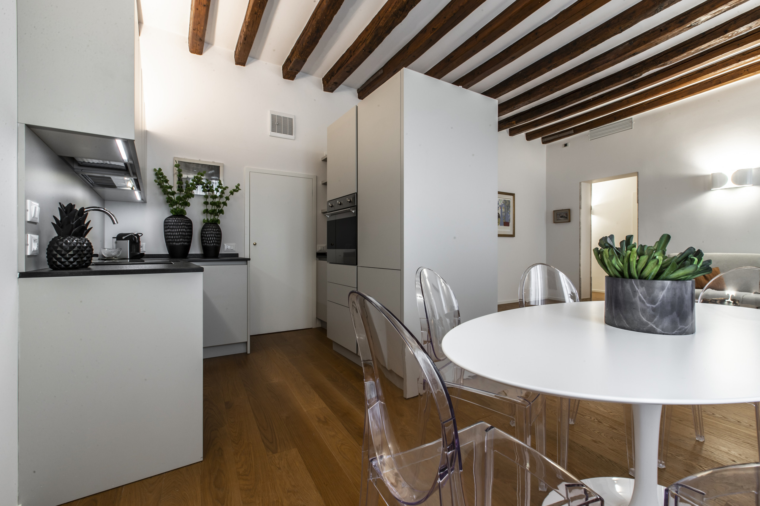 Inside a historic palace located near St. Mark's Square, this fascinating apartment will enchant you with its atmosphere. Just open the windows to admire the passage of gondolas in the canal below.