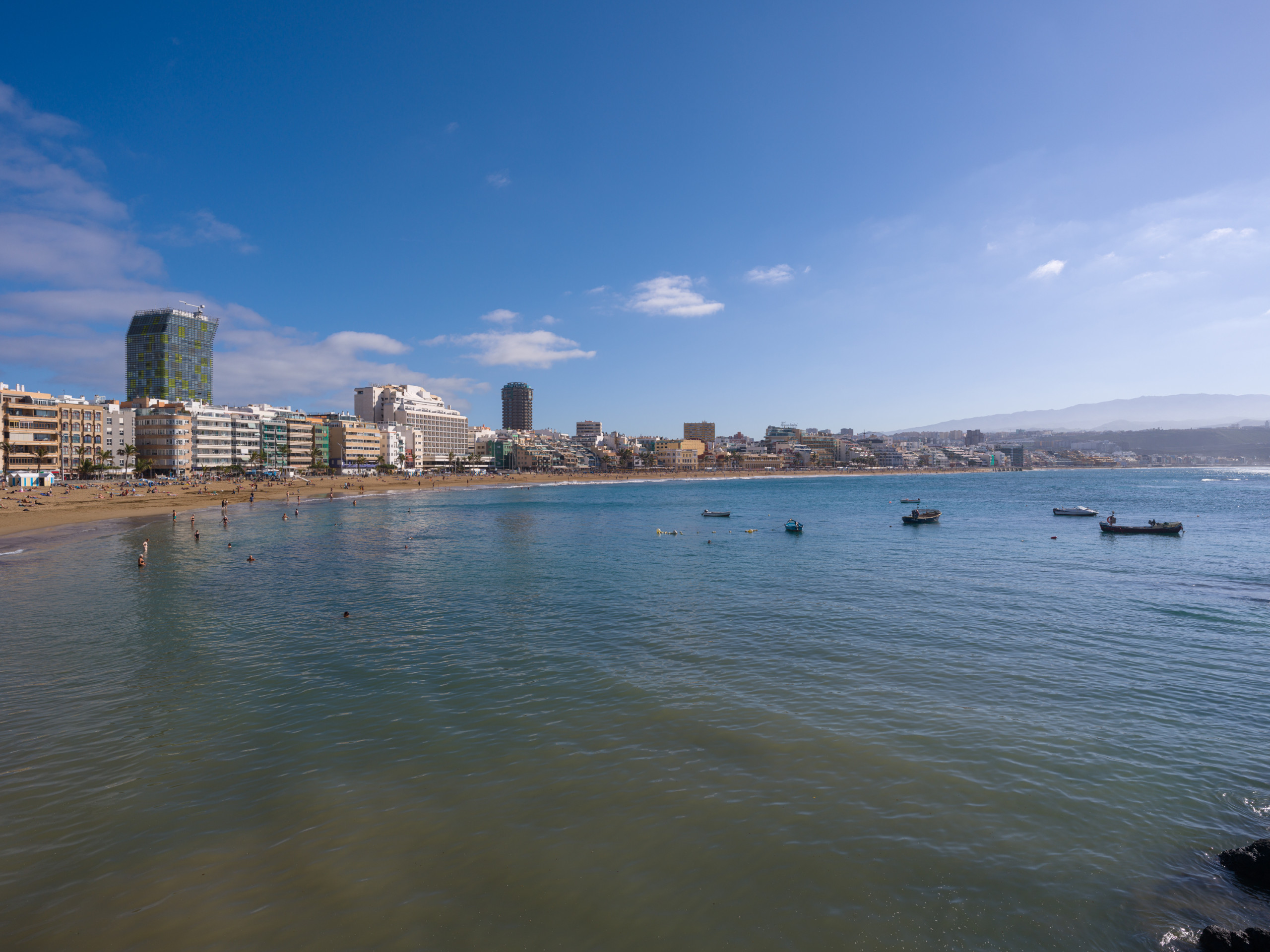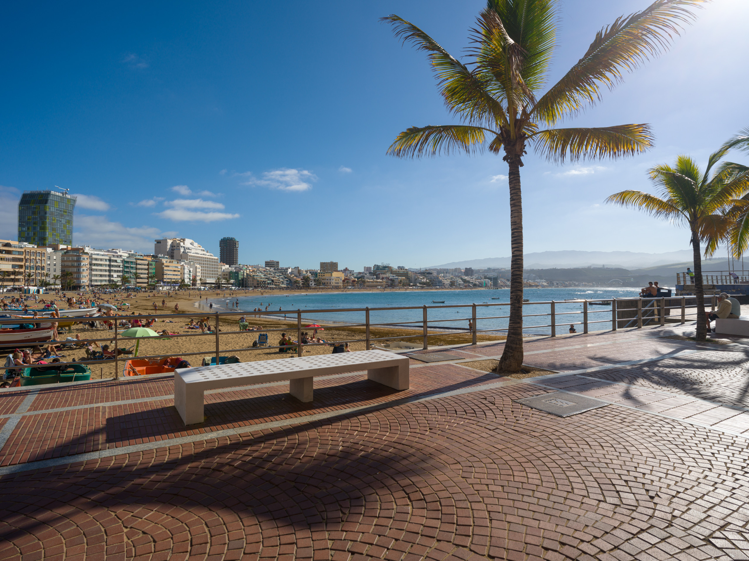 Las Canteras is one of the best urban beaches in the country and in the world, with good weather almost all year round. The place in the capital to relax, where time stands still and where you can do sport any day of the week, wearing a swimming costume, bikini, goggles and snorkel, paddle (beach rackets) or surfboard.