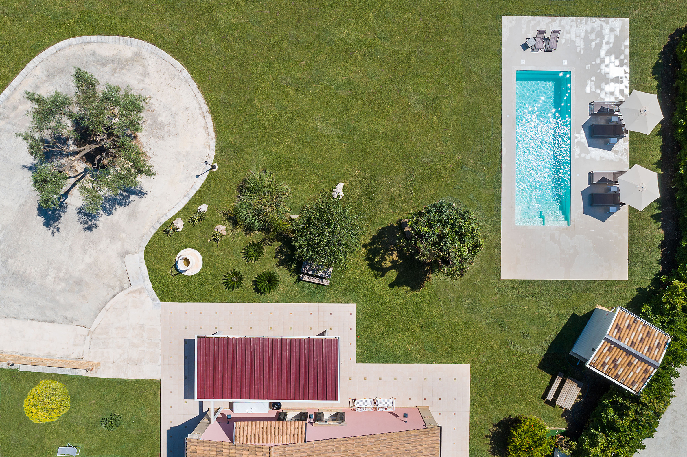 Patio with pergola (bbq and dining area), terraces, garden, pool, sun terrace.