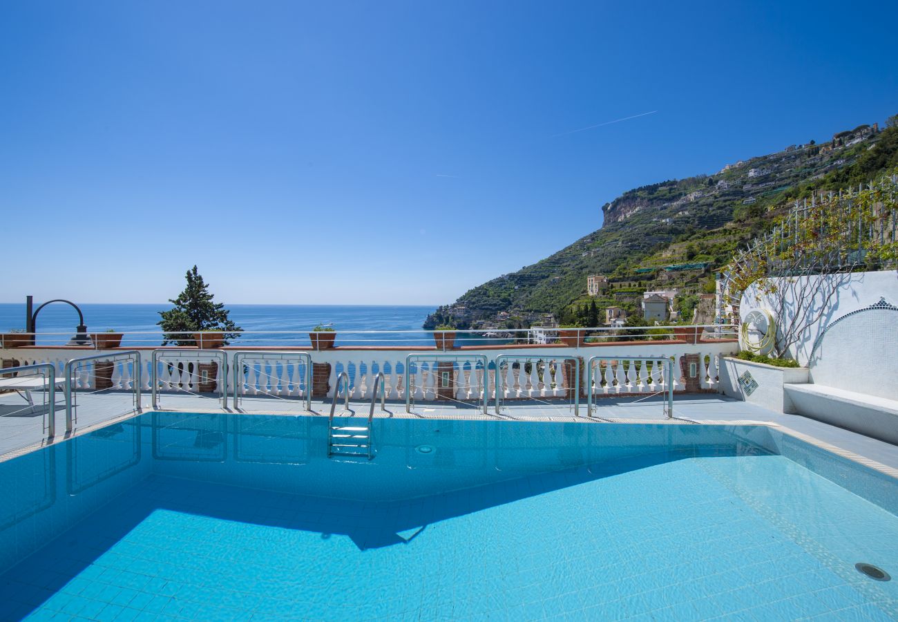 Villa Arte is a historic panoramic villa that was born on the Marmorata Bay of Ravello, in a privileged position: just 3 minutes walk from Minori and a few kilometers from Ravello. The residence, recently renovated, has a large swimming pool overlooking the sea, surrounded by a characteristic Mediterranean-style Roof Garden, and is the perfect solution for large groups thanks to its spacious Suites, all with balconies overlooking the sea. All rooms are furnished with meticulously selected design elements and fine craftsmanship. Equipped with every comfort such as A/C, Wi-Fi, Smart TV, USB sockets and Safe, the Suites of the residence enjoy sunlight for the whole day and a breathtaking view.