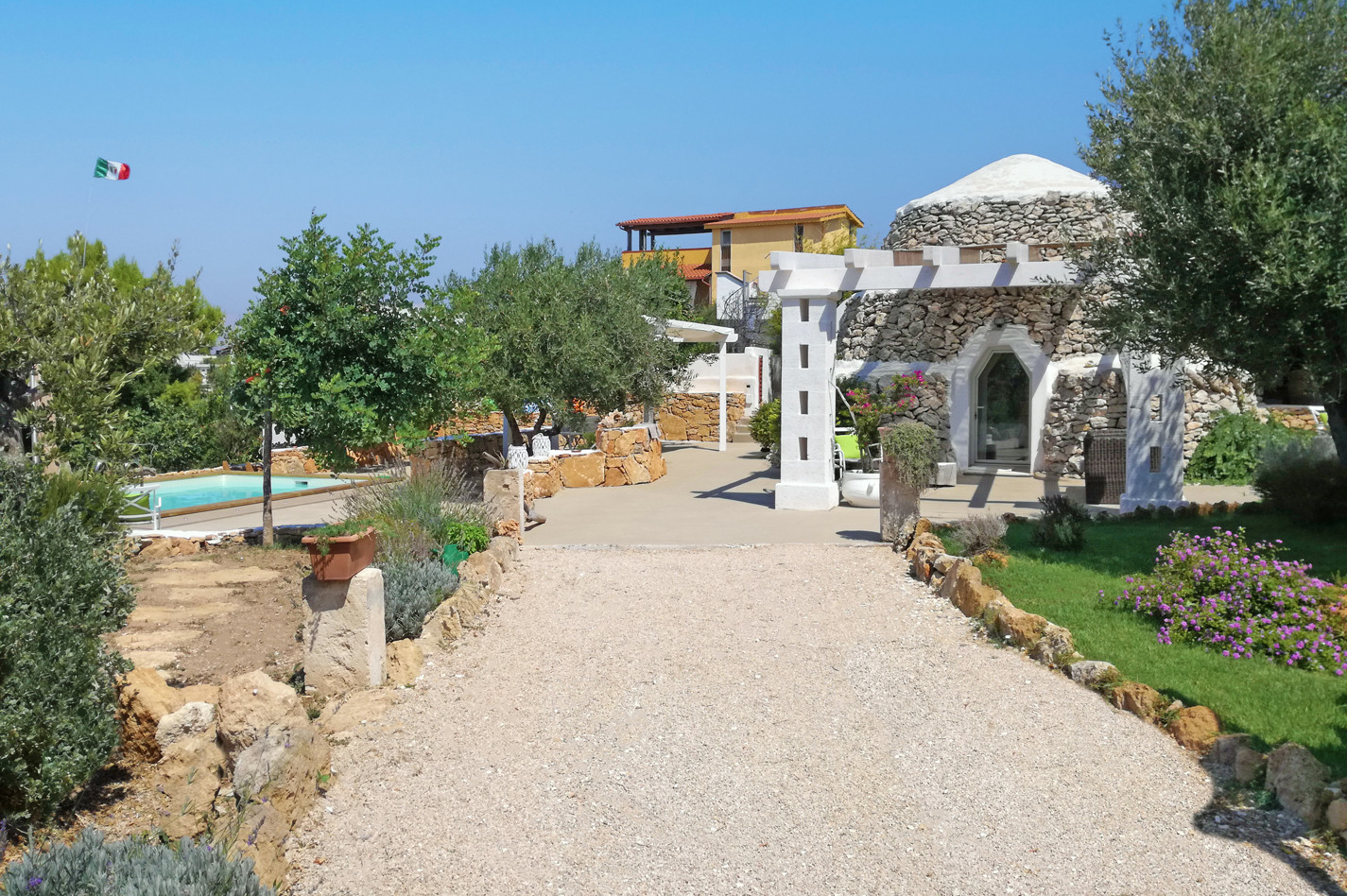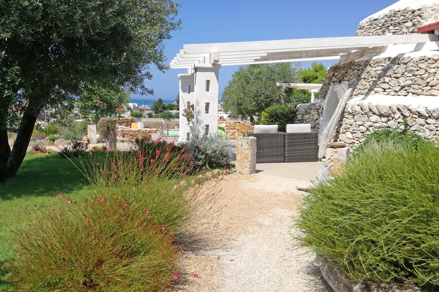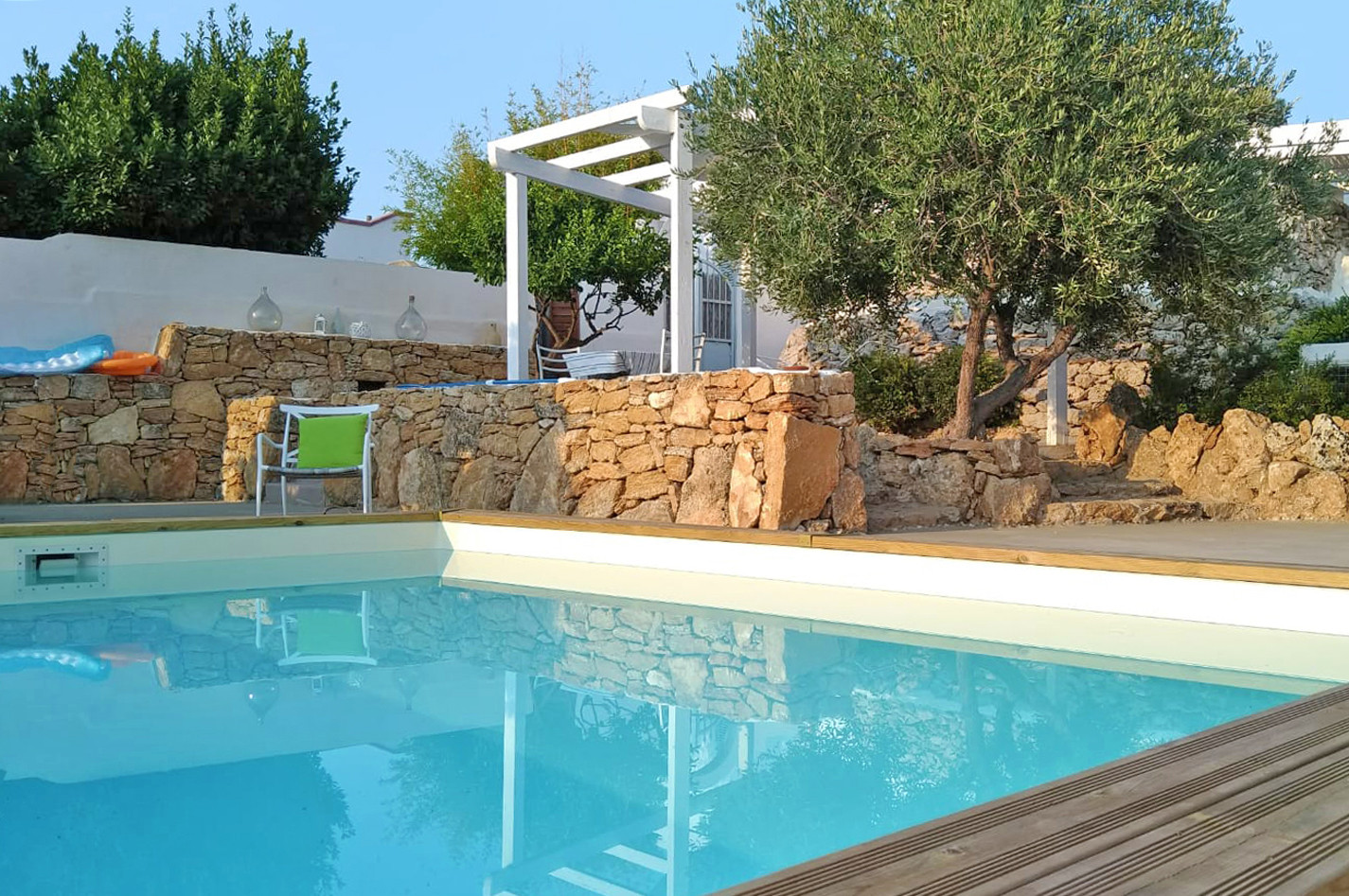 Beautiful villa with private swimming pool located in "Torre Ovo" on the north coast of Salento (Ionian side) not far from a beautiful sandy beach easily reachable on foot. Situated on a natural hillock, far from the traffic, and surrounded by olive trees, thyme, rosemary and myrtle plants, Villa La Samia enjoys a beautiful garden, a spacious terrace and several cool rooms where you can spend pleasant days in the open air, sipping a glass of the typical wine of the area "Primitivo di Manduria". The scents of the Mediterranean maquis, combined with a courteous and attentive service offered directly by the owners of the villa, will make your holiday a pleasant moment and an unforgettable memory. The house, which consists of a main body and a nineteenth century trullo (with independent access), has been renovated in full respect of local materials and construction techniques. The main house includes the living room, the kitchen, two bedrooms and a bathroom. While the trullo houses the third bedroom with private bathroom. The furnishings are simple, but in perfect harmony with the colours and style of the building and contribute to make the atmosphere of the house even more welcoming. There are all the most modern comforts, including air conditioning, Wi-Fi internet, dishwasher and washing machine. The excellent location of Villa La Samia also allows you to easily reach by car many other beautiful beaches of Salento and the famous tourist resorts of Porto Cesareo, Lecce and Gallipoli.