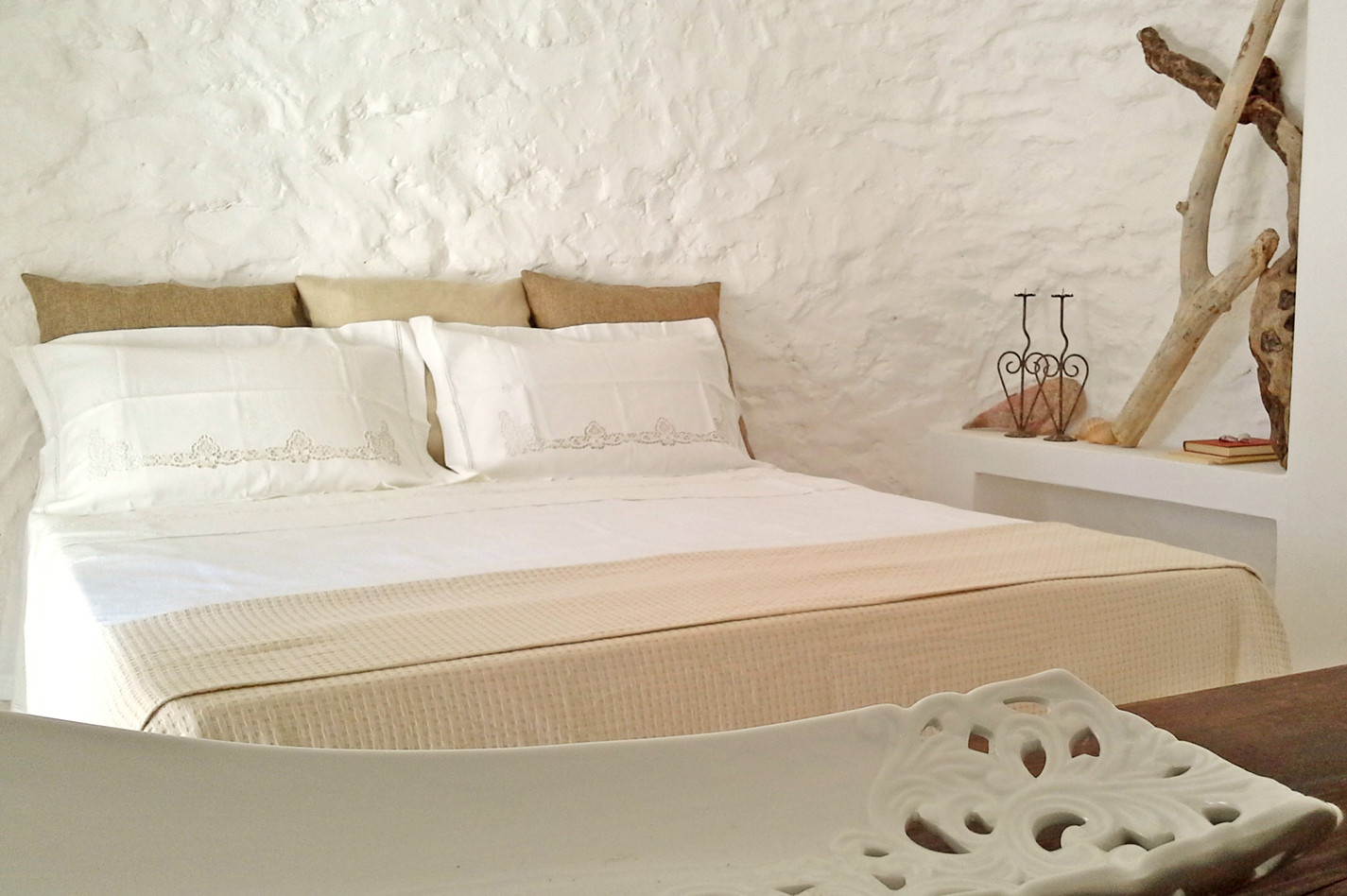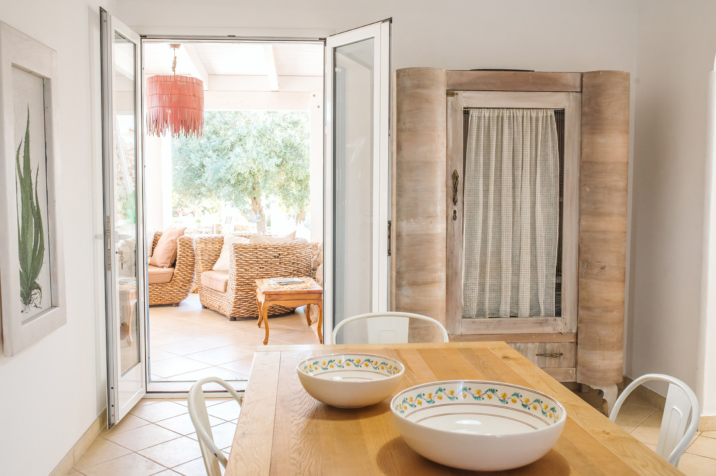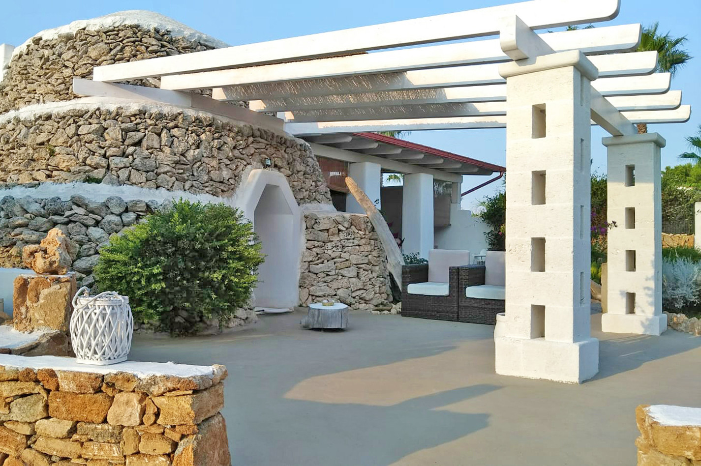 Beautiful villa with private swimming pool located in "Torre Ovo" on the north coast of Salento (Ionian side) not far from a beautiful sandy beach easily reachable on foot. Situated on a natural hillock, far from the traffic, and surrounded by olive trees, thyme, rosemary and myrtle plants, Villa La Samia enjoys a beautiful garden, a spacious terrace and several cool rooms where you can spend pleasant days in the open air, sipping a glass of the typical wine of the area "Primitivo di Manduria". The scents of the Mediterranean maquis, combined with a courteous and attentive service offered directly by the owners of the villa, will make your holiday a pleasant moment and an unforgettable memory. The house, which consists of a main body and a nineteenth century trullo (with independent access), has been renovated in full respect of local materials and construction techniques. The main house includes the living room, the kitchen, two bedrooms and a bathroom. While the trullo houses the third bedroom with private bathroom. The furnishings are simple, but in perfect harmony with the colours and style of the building and contribute to make the atmosphere of the house even more welcoming. There are all the most modern comforts, including air conditioning, Wi-Fi internet, dishwasher and washing machine. The excellent location of Villa La Samia also allows you to easily reach by car many other beautiful beaches of Salento and the famous tourist resorts of Porto Cesareo, Lecce and Gallipoli.