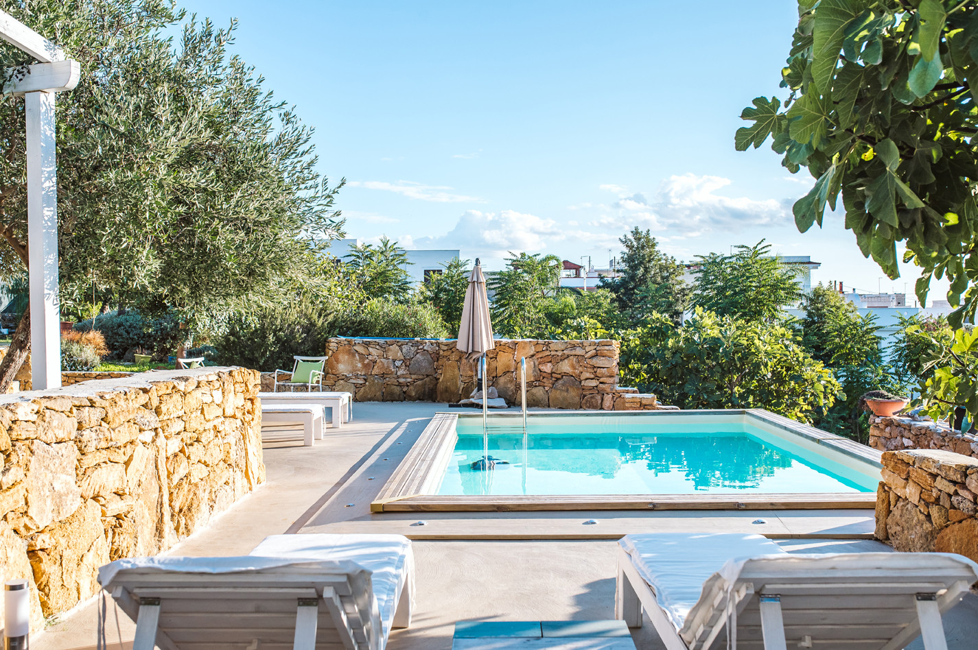 Veranda, terrace, outdoor kitchen, garden, swimming pool, solarium.