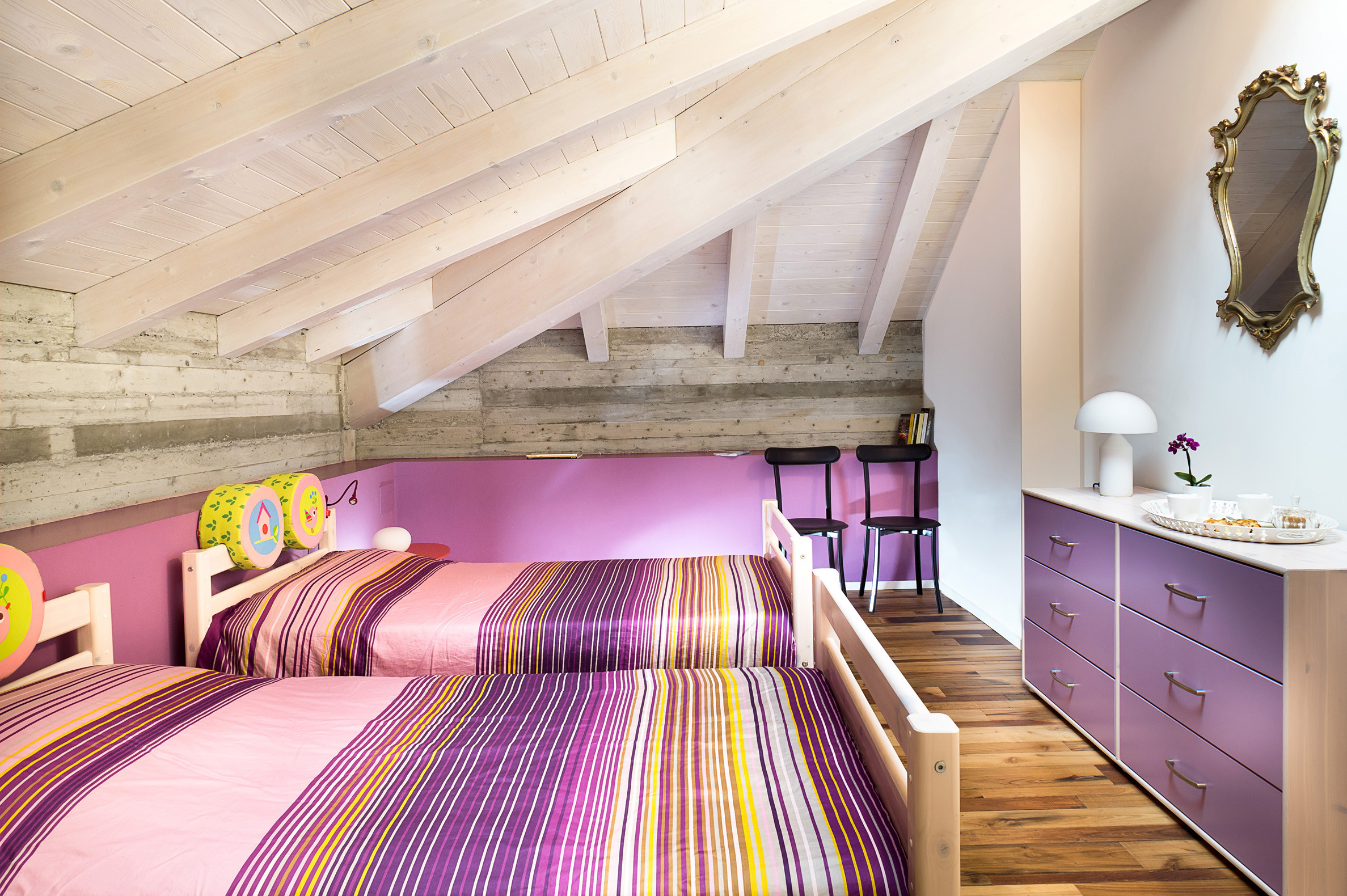 CASETTA: 1 suite with double bed (in the loft) and single sofa bed, 1 bathroom with shower.